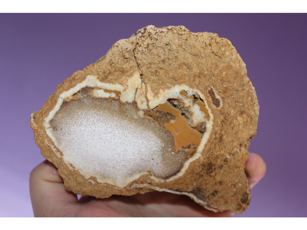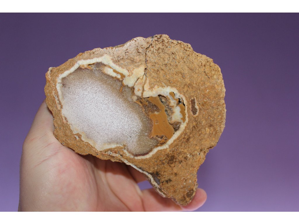 Leštěný ametyst s rohovcem z Kremsigeru (zahrádka) o rozměru 14x11x2 cm