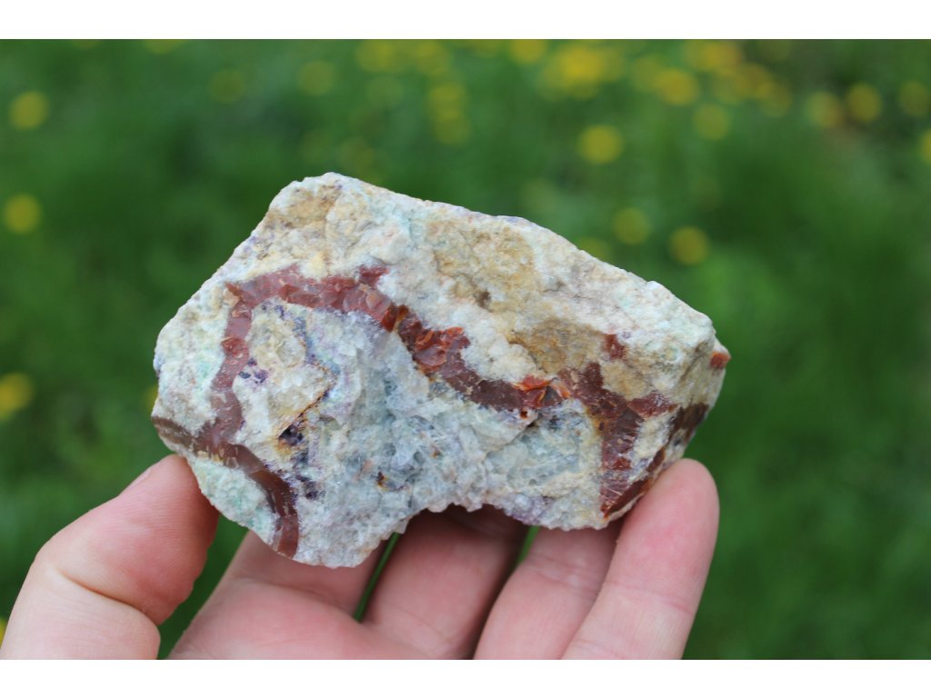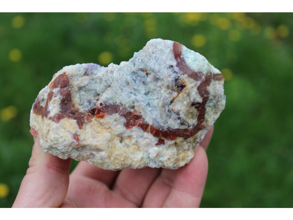 Leštěný Fluorit s Karneolem z Blahuňova o rozměru 7 x 7 x 3 cm
