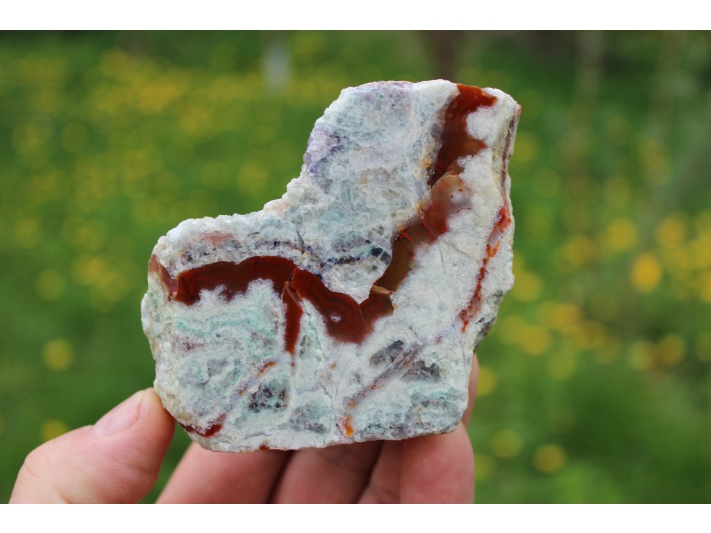 Achát s Ametystem z Mýtinky o rozměru 8x6x2 cm Rok sběru 2012