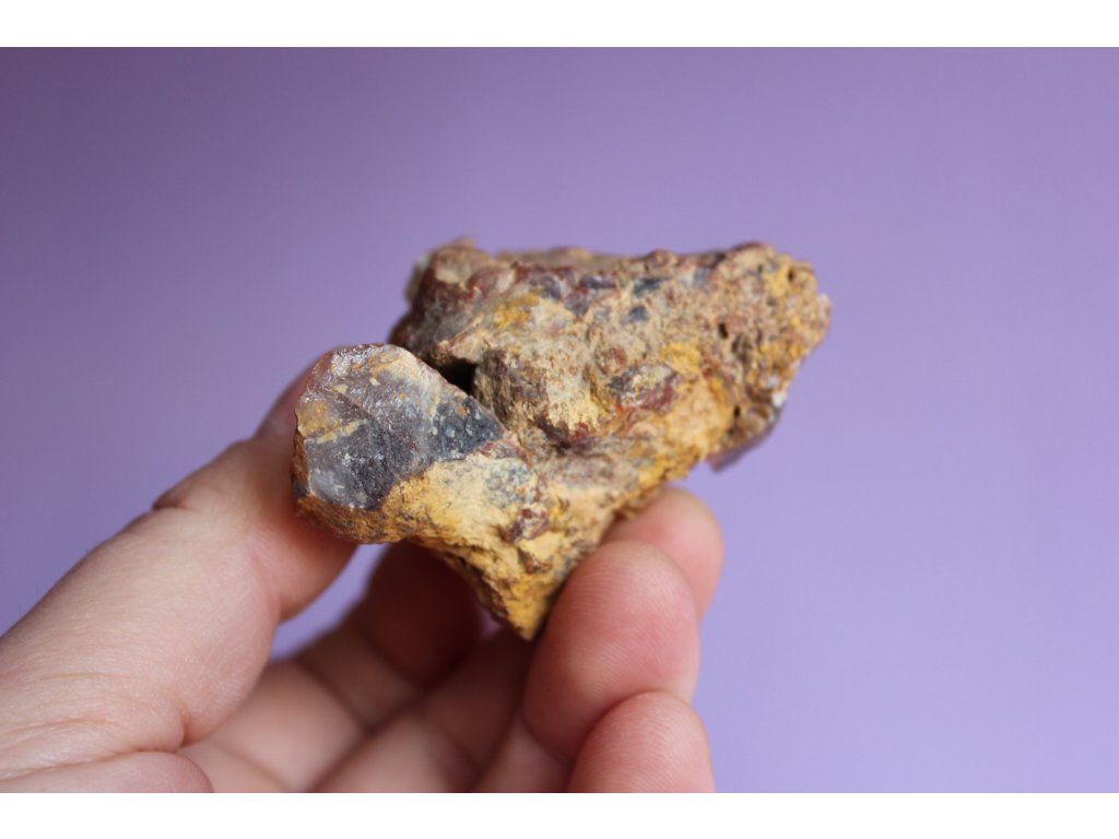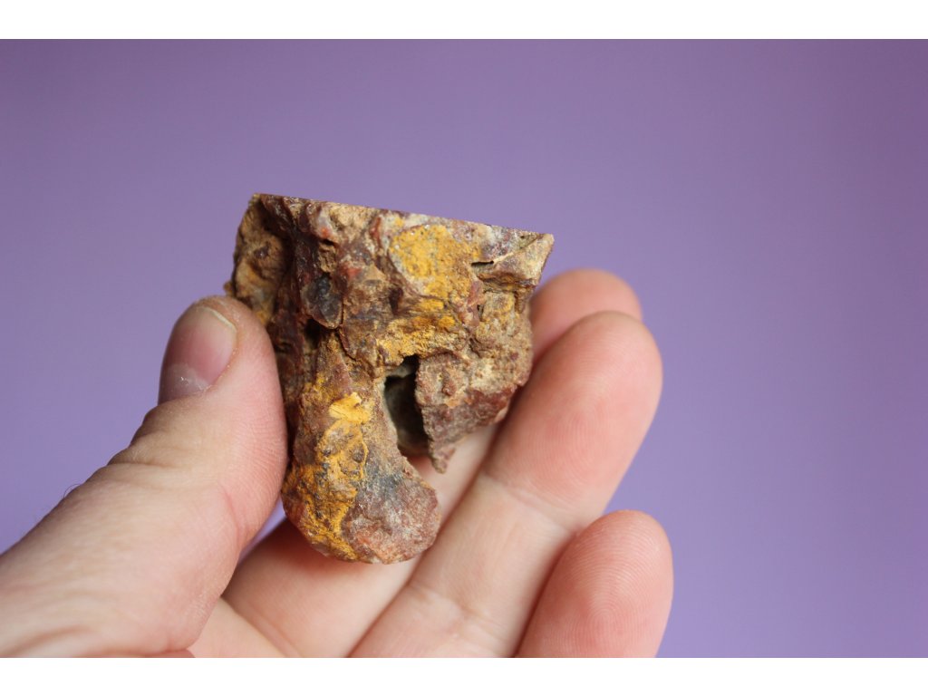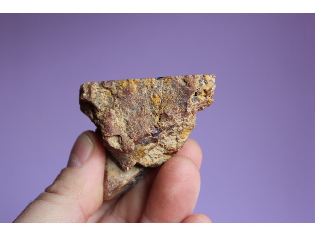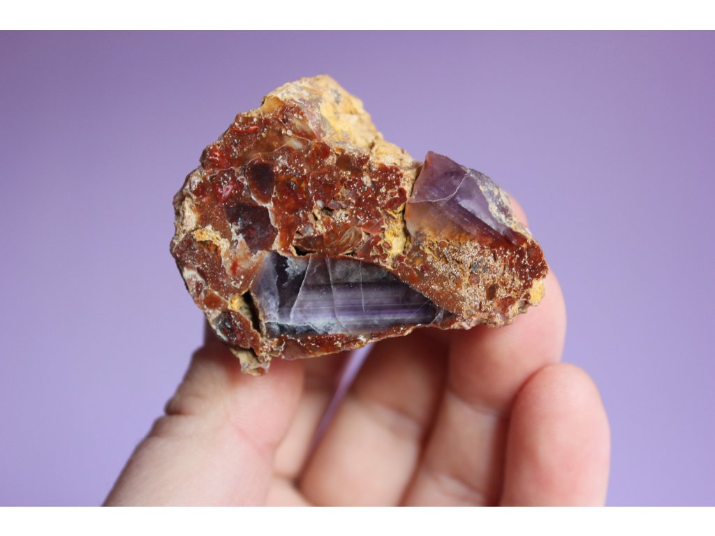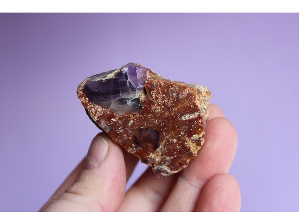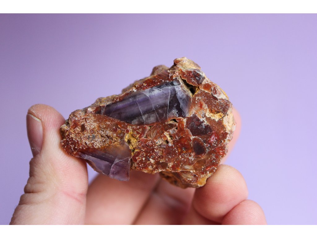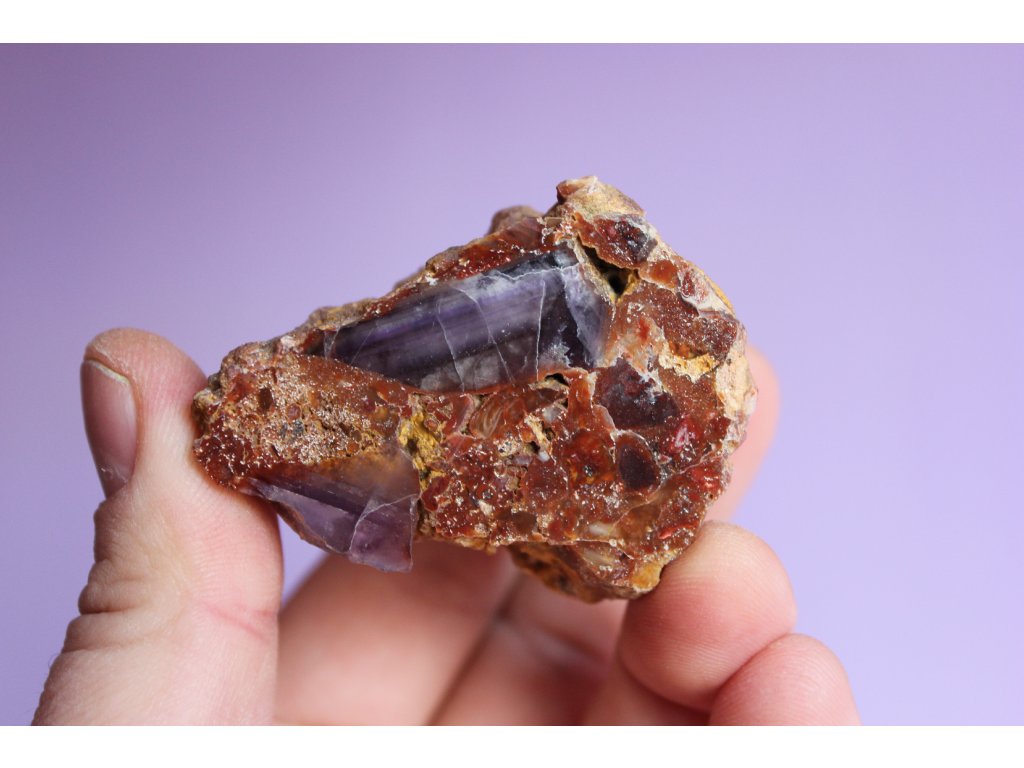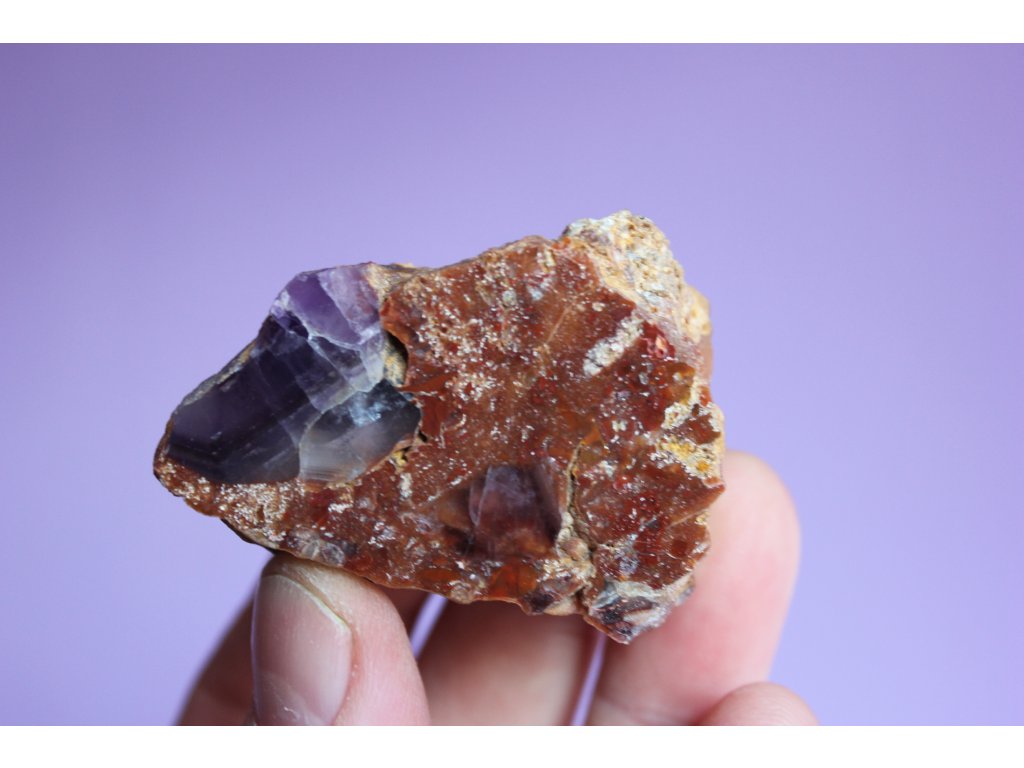 Pár zonálních ametystů v červeném jaspisu z lokality Ciboušov v Krušných Horách