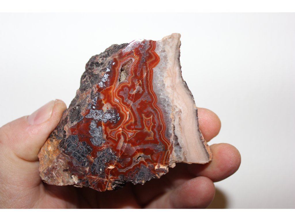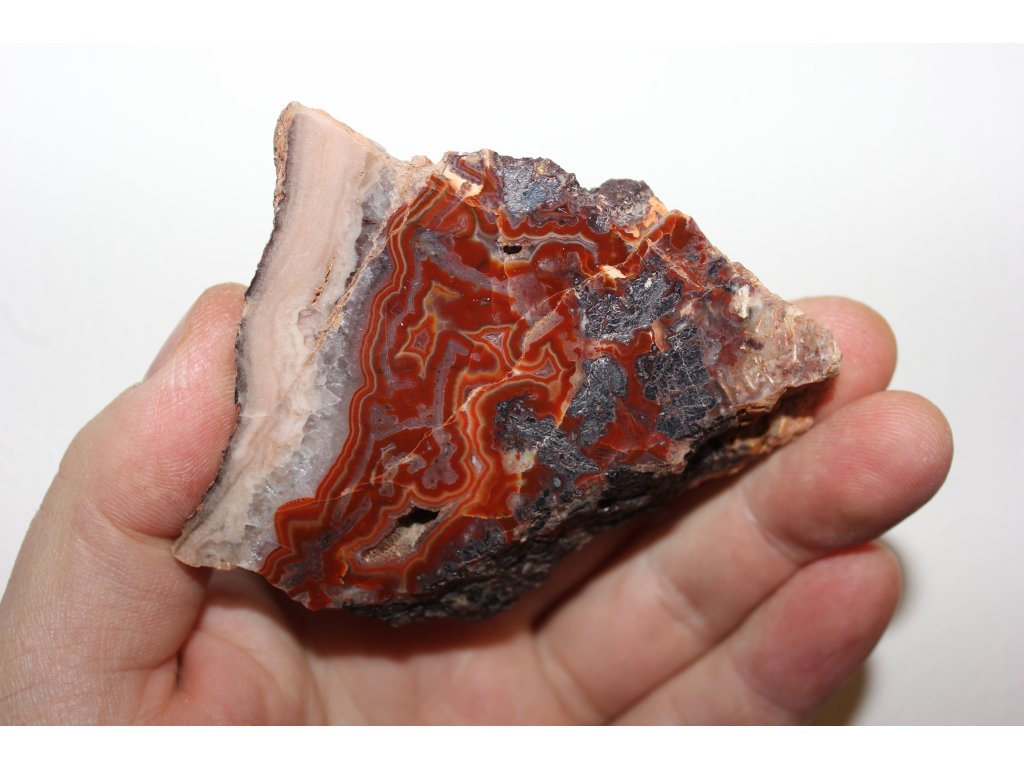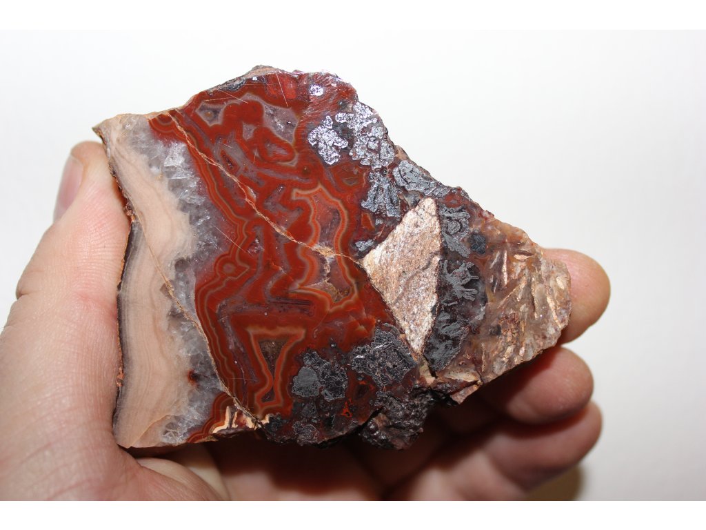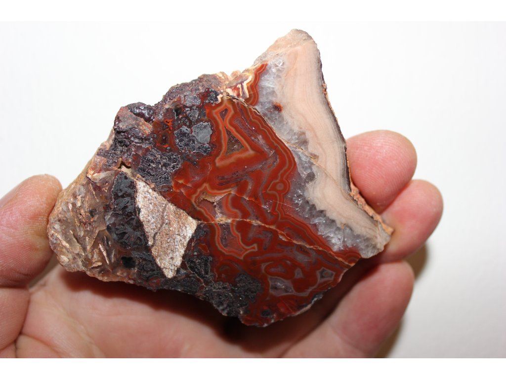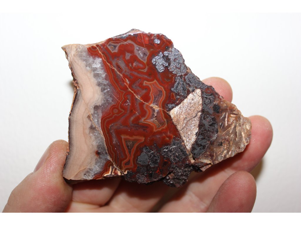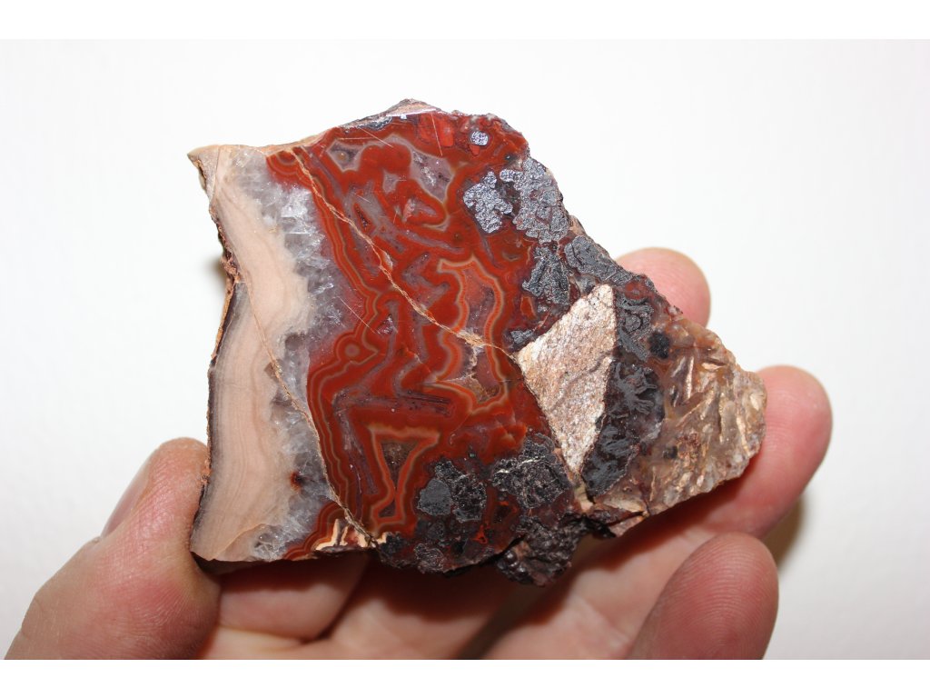 Oboustranně leštěný plátek Achátu z Horní Halže ( červené) v Krušných Horách o rozměru 7x6x1 cm