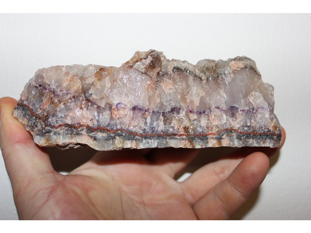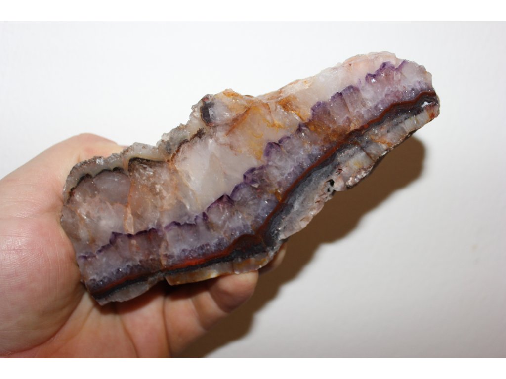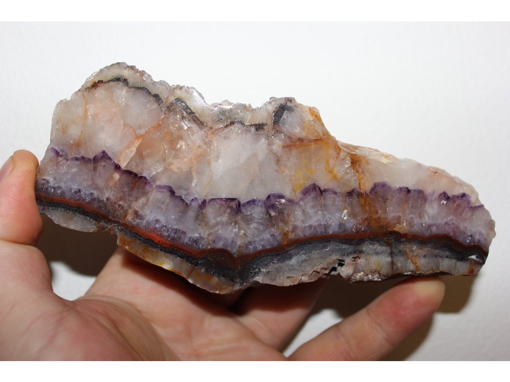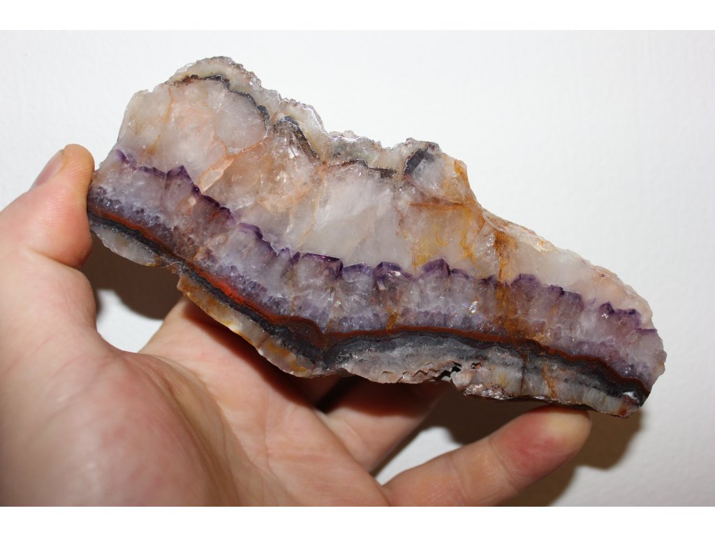 Leštěný Ametyst s karneolovou linkou ve spod z Klášterecké Jeseně o rozměru 15x5x2 cm