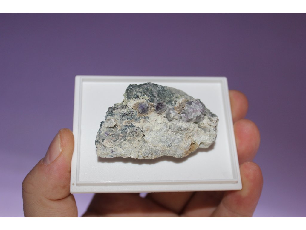 Fluorit  z Krupky  v plastové krabičce o rozměru 8x6x6 cm
