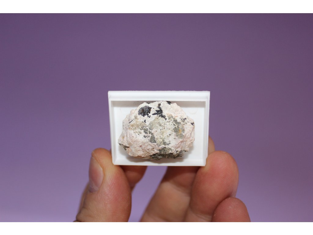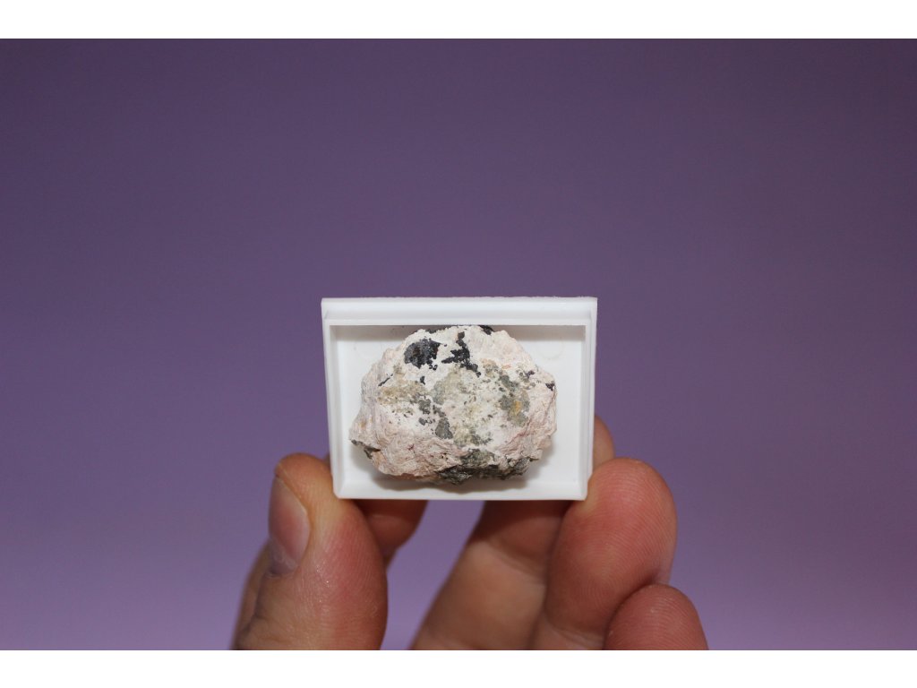 Vzorek Lepidolitu s drobnými xx Kasiteritu z Rožné o celkovém rozměru 8x6x5 cm